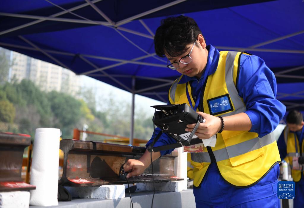 當日,2023年安徽省重點工程職工(農民工)無損檢測探傷工技能競賽在中鐵四局合新鐵路鋪軌基地舉行,來自安徽省重點工程建設崗位上的60名青年技術能手在比賽中各展所長、比拼職業技能。