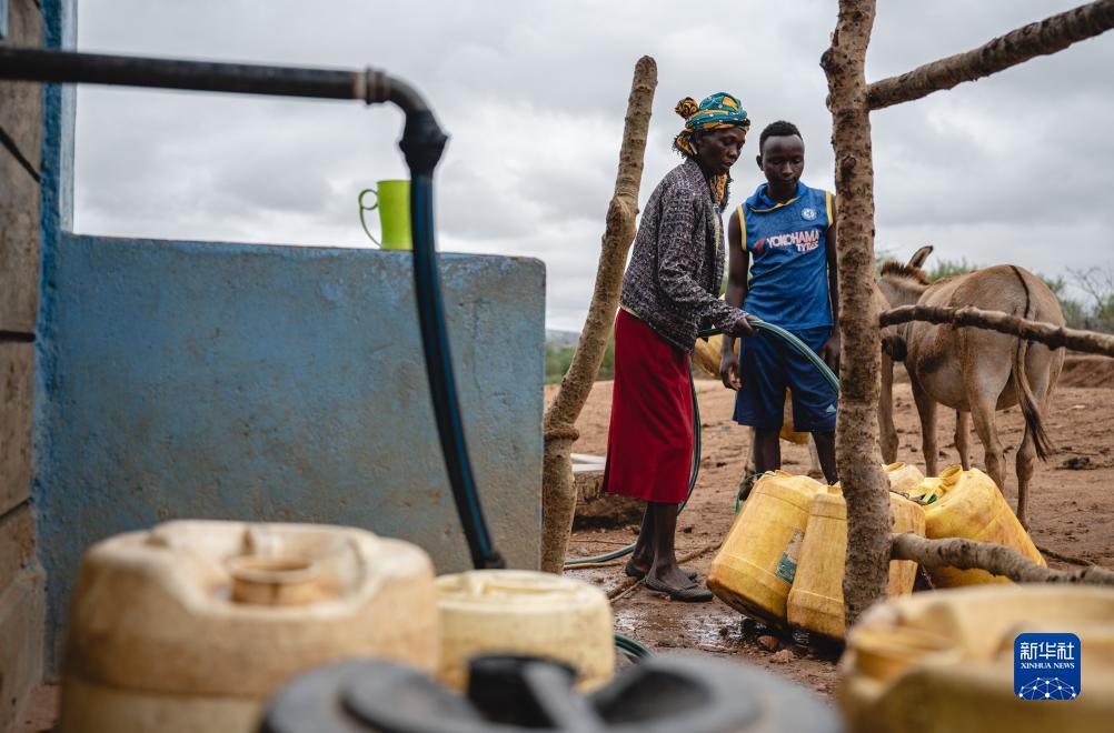 10月17日,居民在肯尼亞馬庫埃尼郡的一處水井接水。