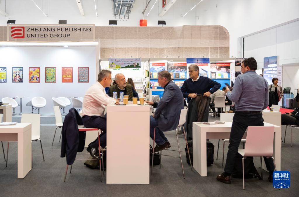 10月18日,人們在德國法蘭克福書展中國展區洽談。