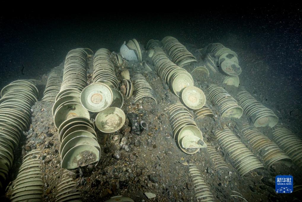 圖為漳州圣杯嶼元代沉船遺址船艙內(nèi)碼放的瓷器。