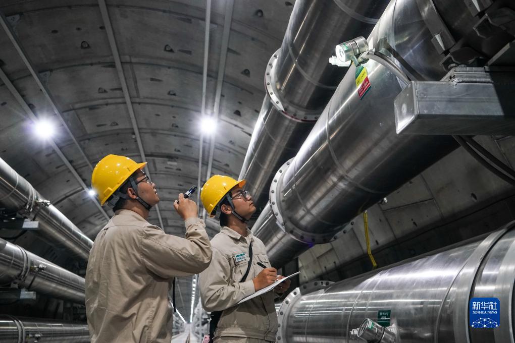 10月19日,國網(wǎng)江蘇電力工作人員在蘇通GIL管廊開展例行巡檢。