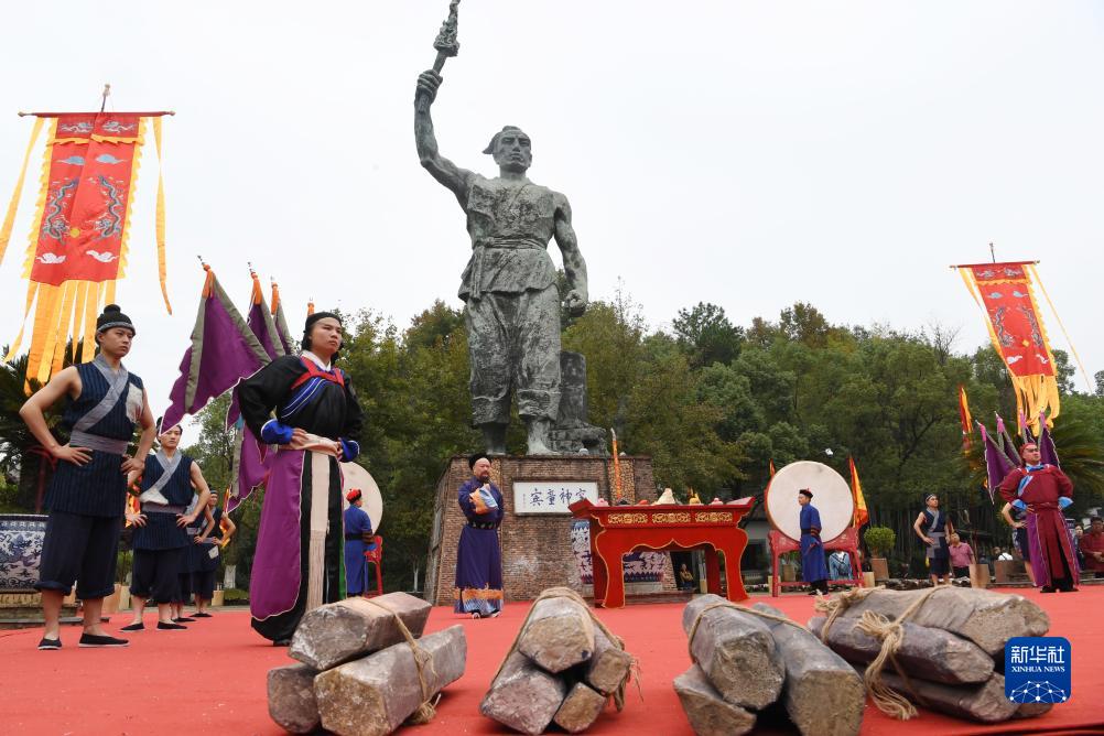 10月19日,在復燒點火儀式前,演員進行祭祀窯神表演。