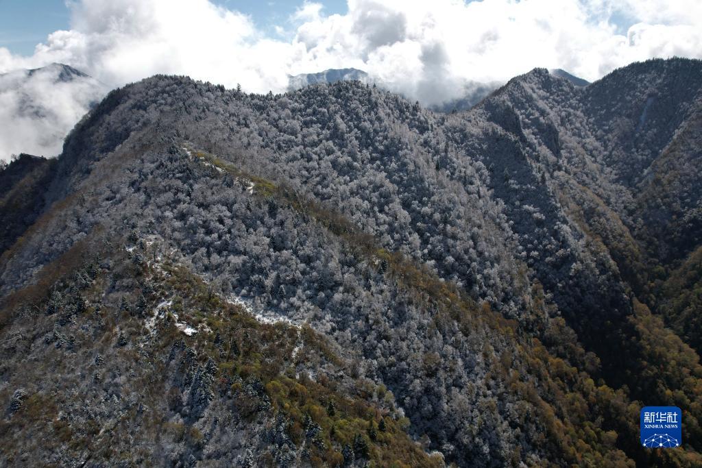 金秋時節,位于甘肅省甘南藏族自治州舟曲縣境內的拉尕山秋意漸濃,一場秋雪降臨后,拉尕山云纏霧繞,斑斕如畫。