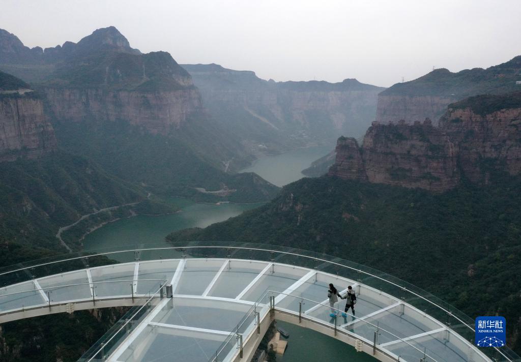 10月19日,游客在河南寶泉旅游度假區(qū)的觀景平臺游玩(無人機照片)。