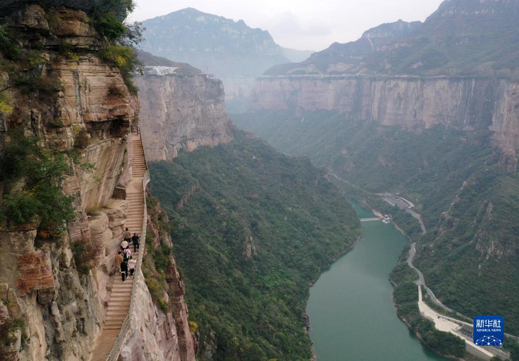 近年來,河南省輝縣市依托南太行山優質旅游資源,積極探索沉浸式文旅新模式,打造以“崖”為主題的景區,建成投運了“空中巴士”、蹦極等懸崖文旅項目,讓廣大游客沉浸式游覽在懸崖峭壁之中。