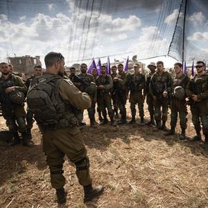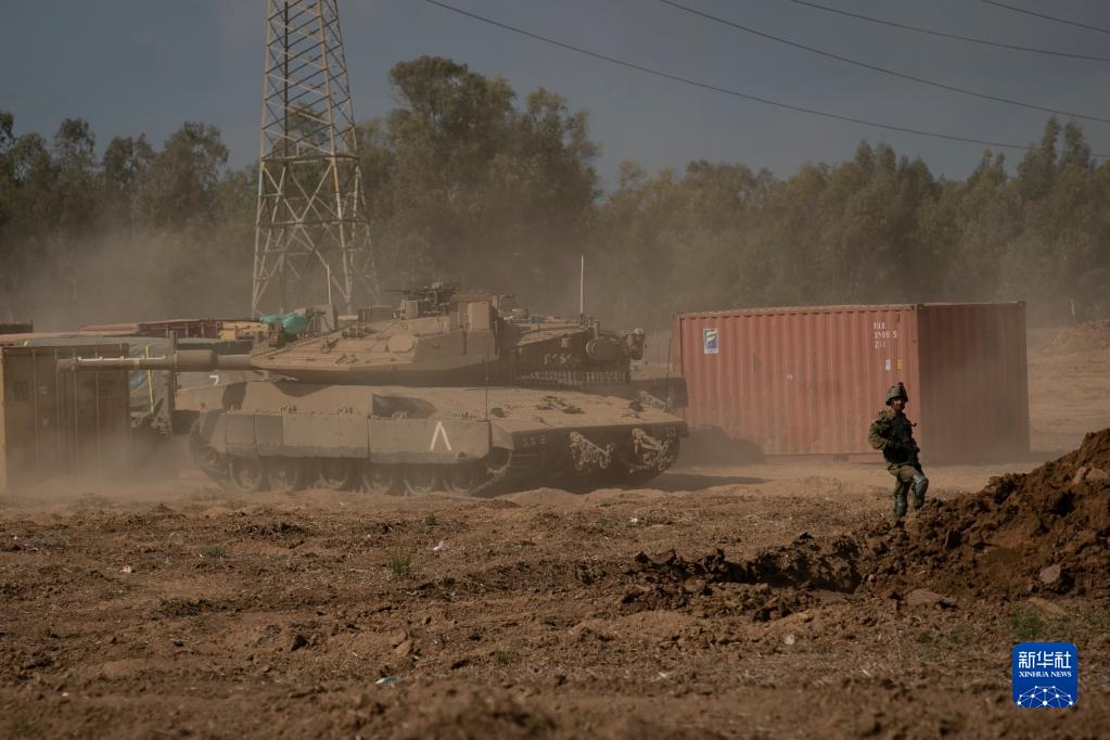 這是10月19日在加沙邊境以色列一側拍攝的集結的以軍戰車和人員。