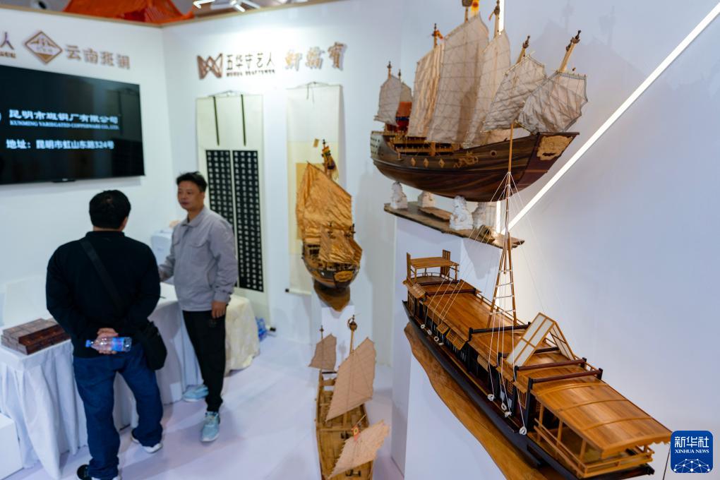 這是10月20日在創意云南文化產業博覽會上拍攝的木船模型。
