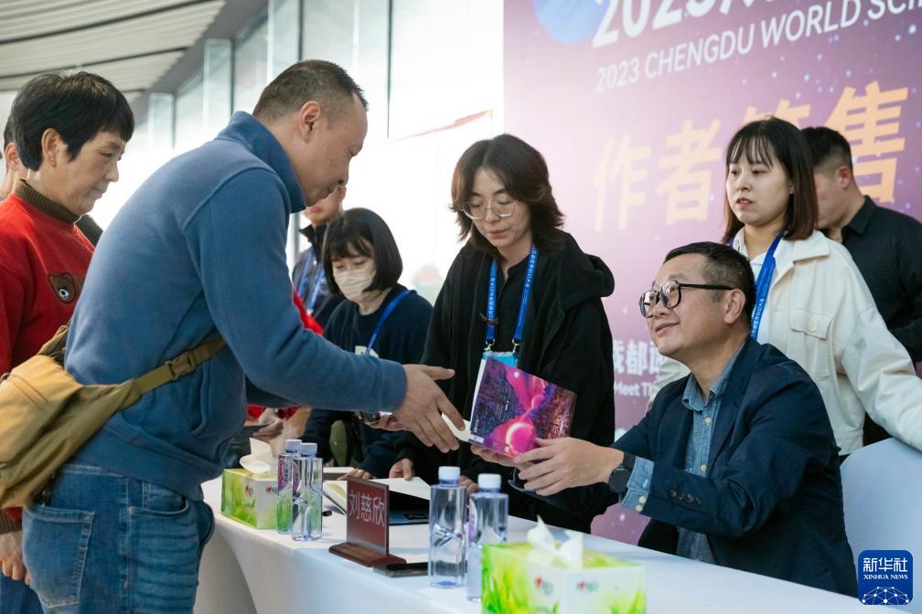 當日,2023成都世界科幻大會舉行簽售活動,本屆世界科幻大會榮譽主賓、科幻文學領域國際大獎——雨果獎獲獎作品《三體》作者劉慈欣到場簽售,吸引眾多科幻迷前來與其交流。