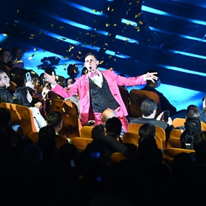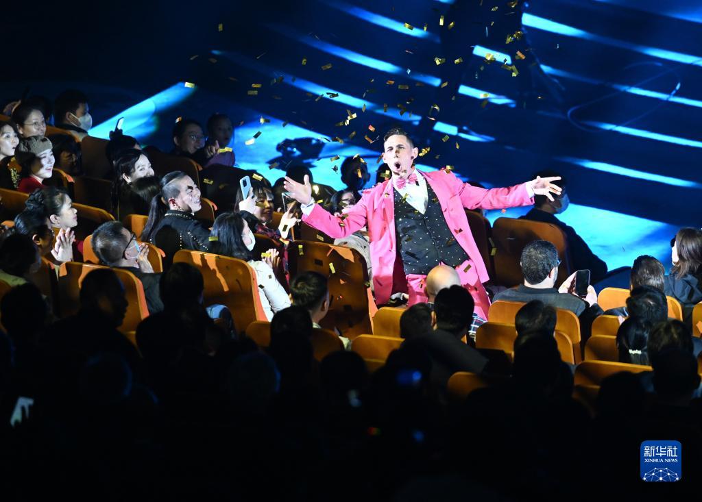 10月20日,演員在第十九屆中國(guó)吳橋國(guó)際雜技藝術(shù)節(jié)開(kāi)幕式上與觀眾互動(dòng)。