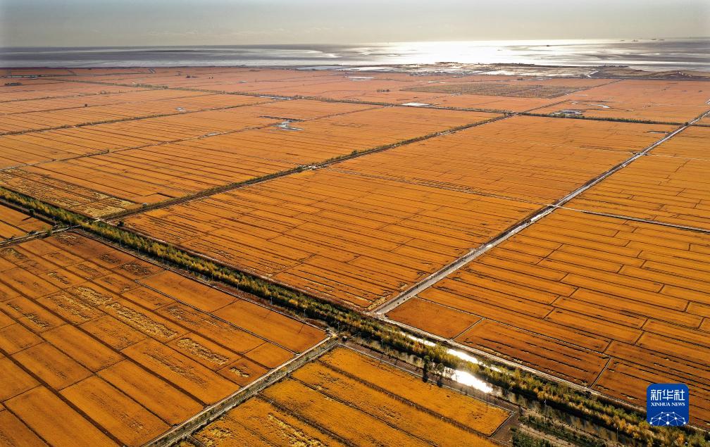 這是盤錦市遼河三角洲的稻田(10月20日攝,無人機(jī)照片)。