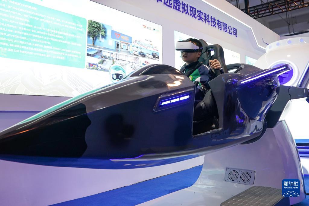 10月21日,一名小朋友在第十一屆中國(蕪湖)科普產品博覽交易會上體驗虛擬現實技術。