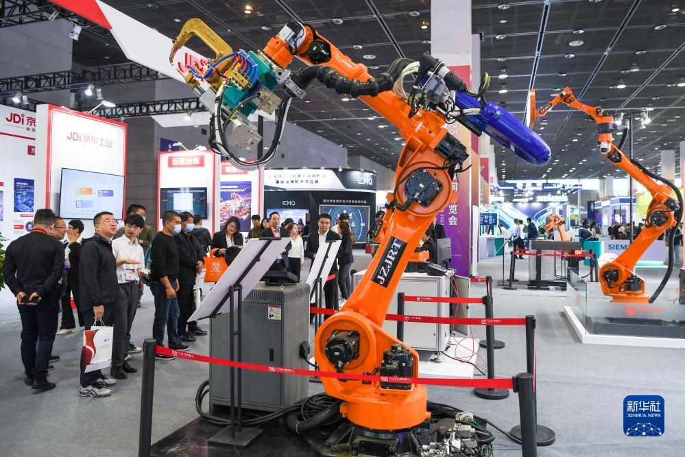 10月21日在2023世界物聯(lián)網(wǎng)博覽會活動現(xiàn)場拍攝的智能機器人工作站。