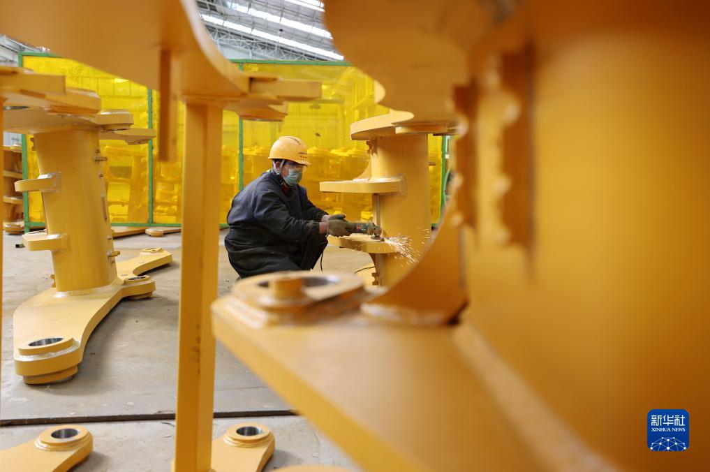 10月21日,在位于山東省臨沂市蘭山區的山東華星工程機械有限公司生產車間,工人在進行打磨作業。