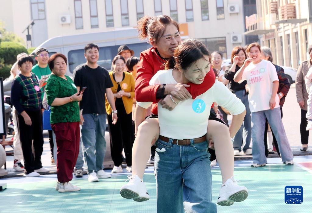 10月21日,在浙江省湖州市德清縣禹越鎮(zhèn)三林村,村民在參加“媳婦背婆婆”趣味游戲。