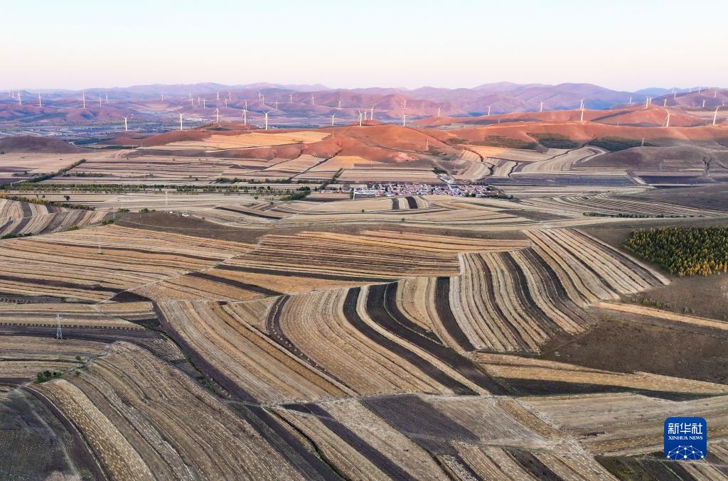 入秋以來,位于河北省北部的壩上地區很多植物顏色由綠變黃,秋意顯現,進入10月份,秋色更加濃郁,大地色彩斑斕,農民迎來豐收。