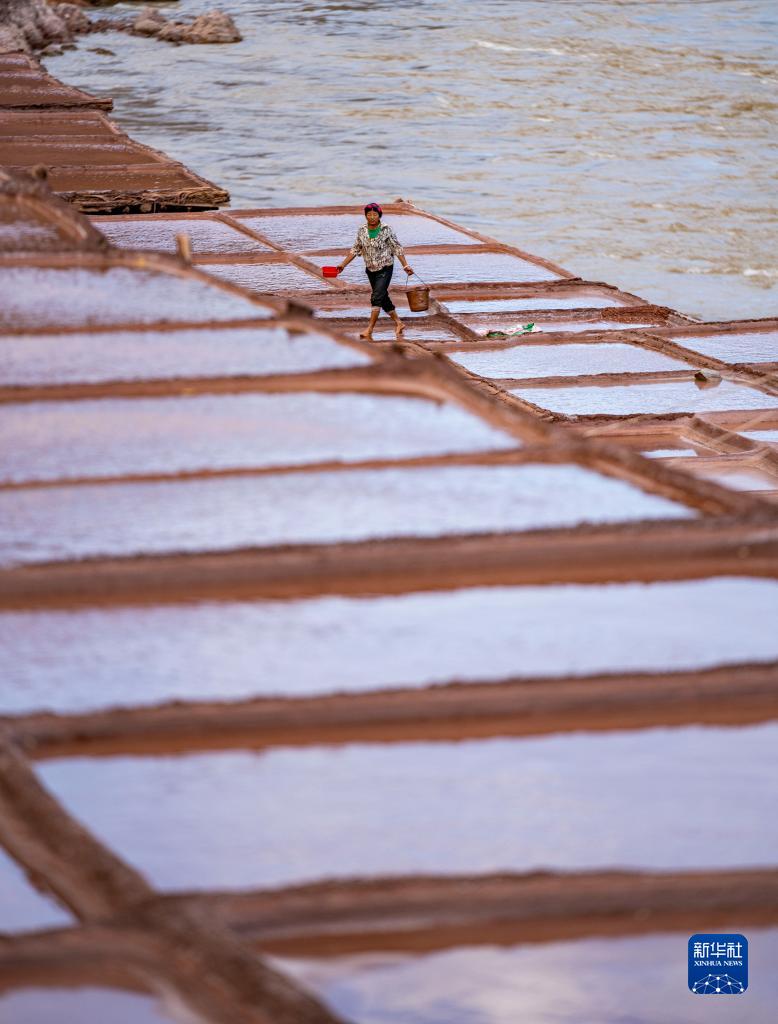 西藏昌都市芒康縣納西民族鄉位于瀾滄江畔,當地從唐代開始制鹽,距今已延續1300余年。鹽田在瀾滄江兩岸依山而建,由多根木柱搭架,架上用透水性強的泥土鋪成平面夯實。當地村民仍保持著原始的手工曬鹽方式,他們從瀾滄江畔的鹽井、鹽池中取出鹵水倒入鹽田,經陽光蒸曬、風干,結晶成鹽。遠遠望去,鹽田錯落有致,景色奇美。