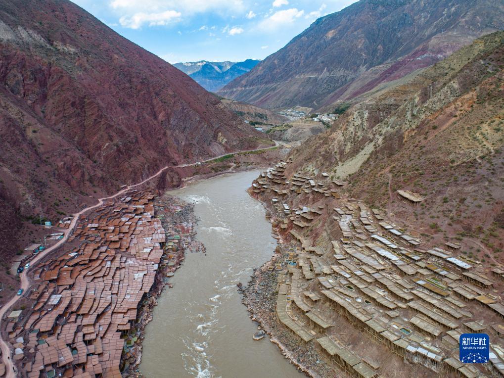 西藏昌都市芒康縣納西民族鄉位于瀾滄江畔,當地從唐代開始制鹽,距今已延續1300余年。鹽田在瀾滄江兩岸依山而建,由多根木柱搭架,架上用透水性強的泥土鋪成平面夯實。當地村民仍保持著原始的手工曬鹽方式,他們從瀾滄江畔的鹽井、鹽池中取出鹵水倒入鹽田,經陽光蒸曬、風干,結晶成鹽。遠遠望去,鹽田錯落有致,景色奇美。