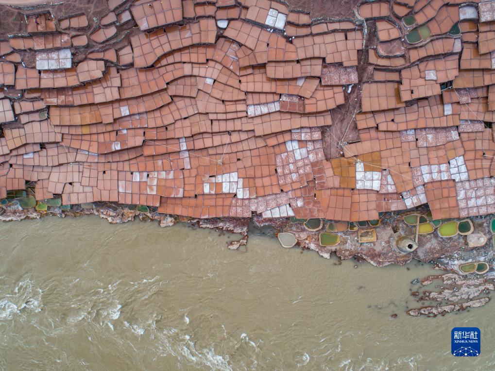 西藏昌都市芒康縣納西民族鄉位于瀾滄江畔,當地從唐代開始制鹽,距今已延續1300余年。鹽田在瀾滄江兩岸依山而建,由多根木柱搭架,架上用透水性強的泥土鋪成平面夯實。當地村民仍保持著原始的手工曬鹽方式,他們從瀾滄江畔的鹽井、鹽池中取出鹵水倒入鹽田,經陽光蒸曬、風干,結晶成鹽。遠遠望去,鹽田錯落有致,景色奇美。