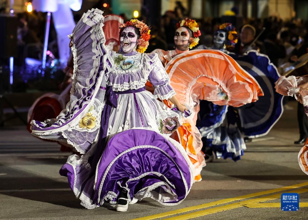 當日,美國芝加哥舉行名為“黑暗中的藝術”的萬圣節游行。
