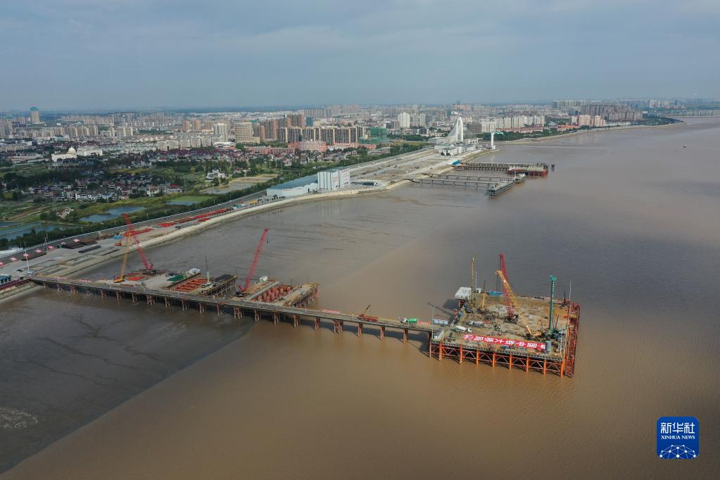 當(dāng)日,杭州灣跨海鐵路橋首個主塔墩樁基施工完成,大橋建設(shè)取得階段性進展。