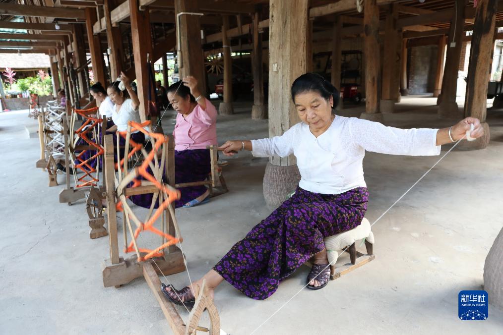 10月18日,在云南省景洪市勐罕鎮(zhèn)曼聽村,村民向游客展示紡線技藝。