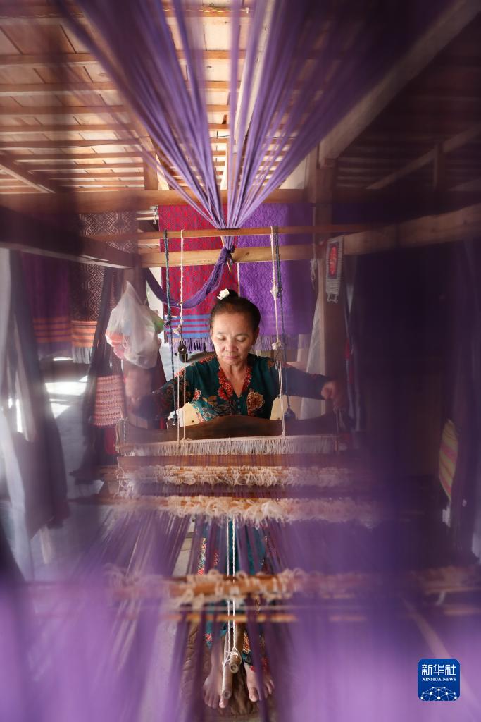 10月18日,云南省景洪市勐罕鎮(zhèn)曼聽村傣族婦女在非遺展示區(qū)制作傣錦。