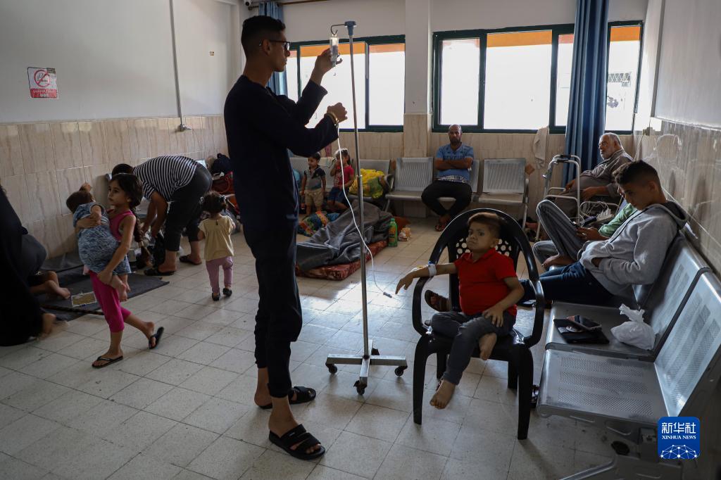 10月22日,在加沙地帶南部城市汗尤尼斯的納賽爾醫(yī)院,醫(yī)務(wù)人員救治在以色列空襲中受傷的巴勒斯坦人。