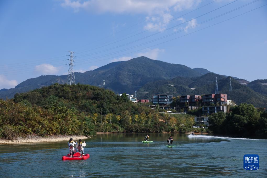 10月23日,游客在建德市楊村橋鎮嶺源樂活島休閑基地體驗水上運動項目。