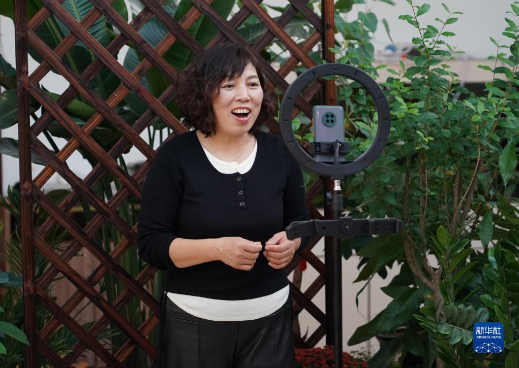 王翠云在家中練習視頻直播技巧(10月19日攝)。