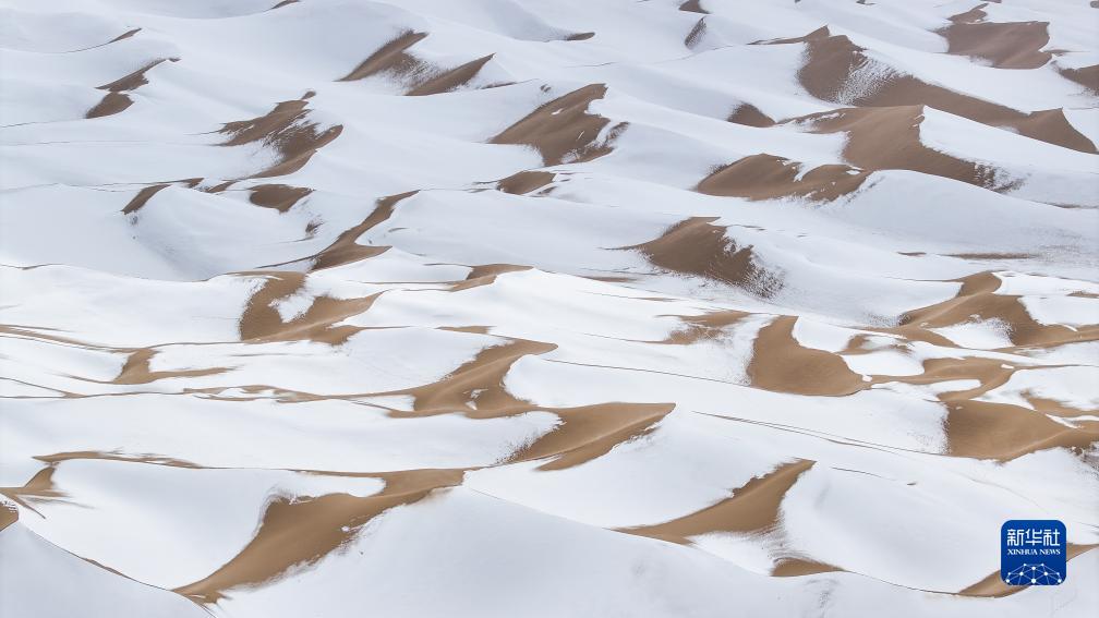 10月16日在阿爾金山國家級自然保護區拍攝的雪后庫木庫里沙漠(無人機照片)。