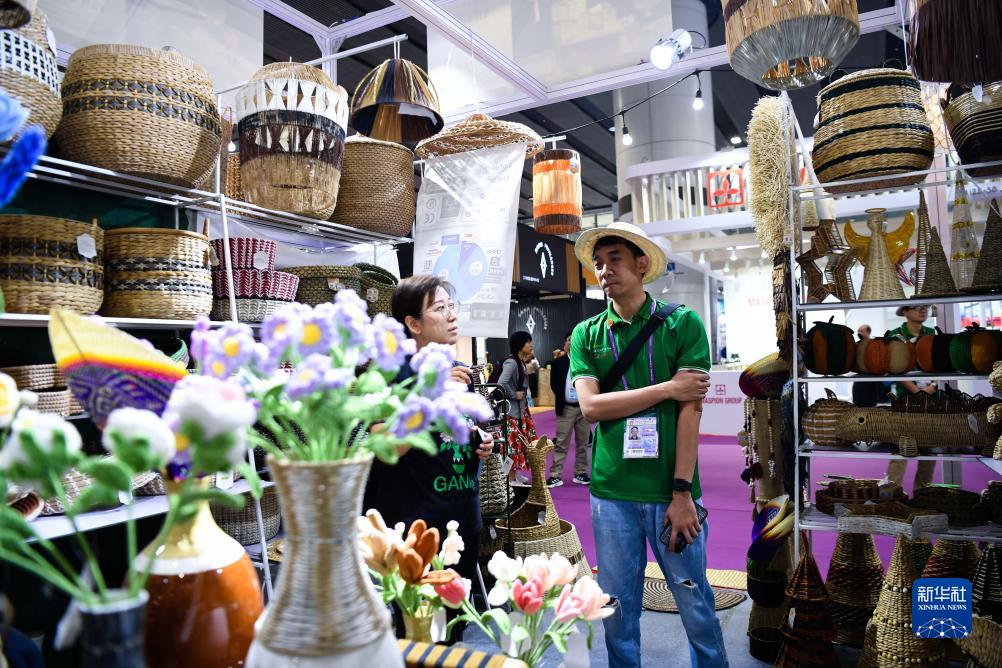 10月23日,人們在進口展區的越南企業展臺洽談業務。