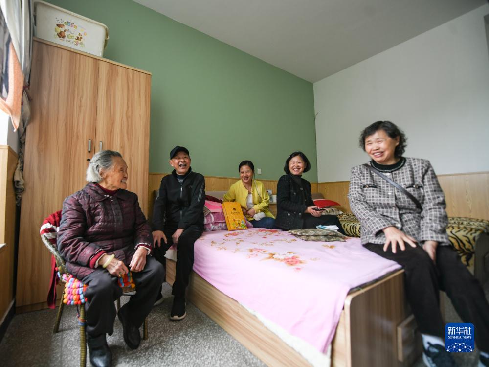 10月20日,在四川省眉山市彭山區(qū)社會(huì)福利院,趙鳳章老奶奶(左一)和前來(lái)看望她的家人們聊天。