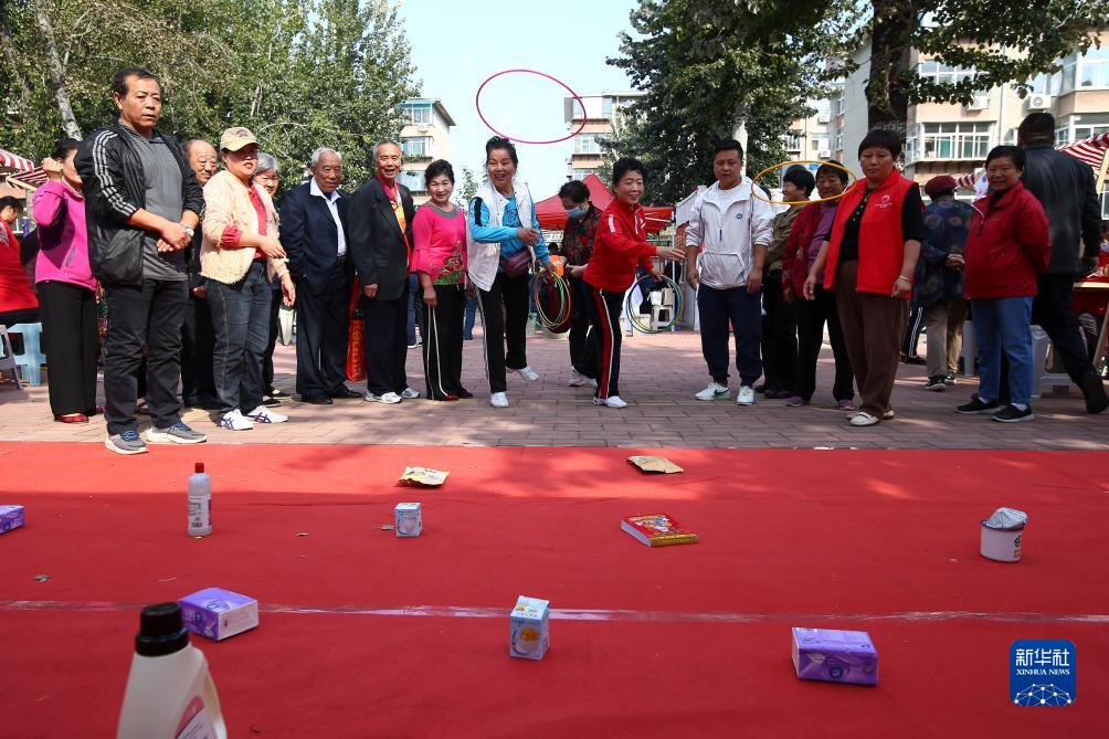 10月23日,在山東省濟南市洪家樓街道洪樓廣場社區(qū),老年人在參加套圈游戲。