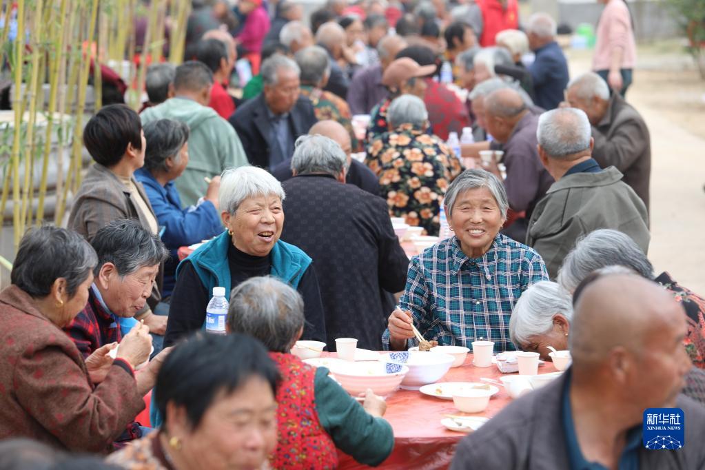 10月23日,河南省焦作市溫縣祥云鎮(zhèn)南賈村老人在參加“重陽宴”。