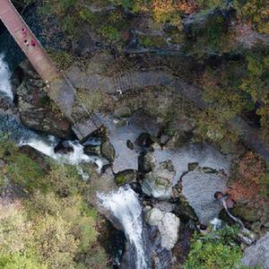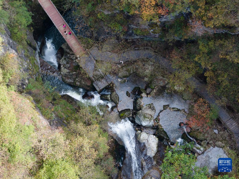 10月21日,游客在位于朱家灣村的牛背梁國家森林公園內游覽(無人機照片)。