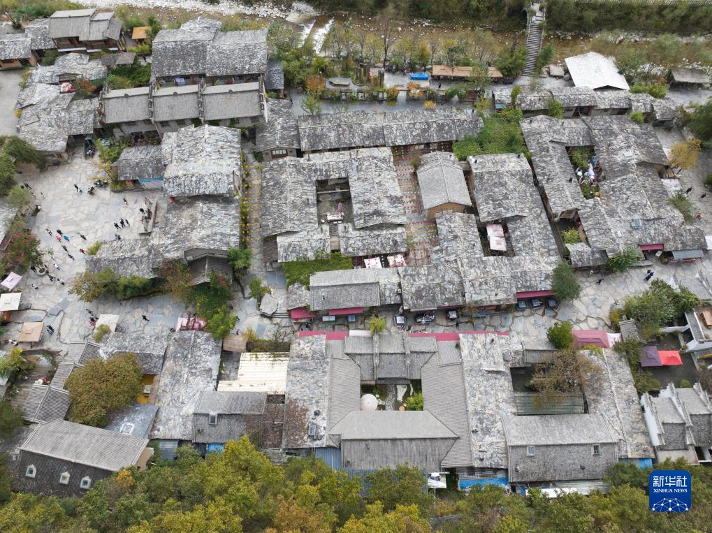 俯瞰朱家灣村終南山寨民俗文化村(10月21日攝,無(wú)人機(jī)照片)。