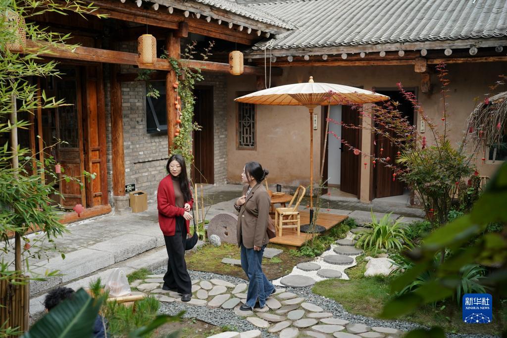 10月21日,游客在朱家灣村一家民宿內參觀。