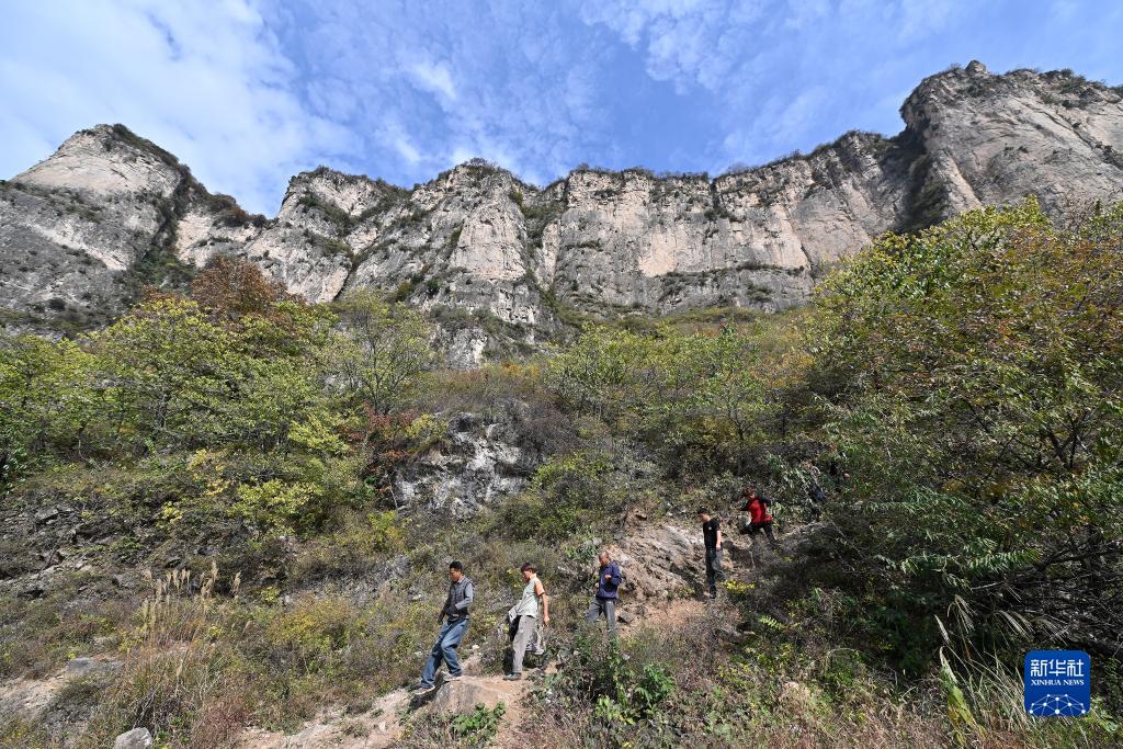 在壺關(guān)縣大峽谷鎮(zhèn)青龍峽村,村民們?cè)谛蘼烽g隙到山下休息(10月17日攝)。
