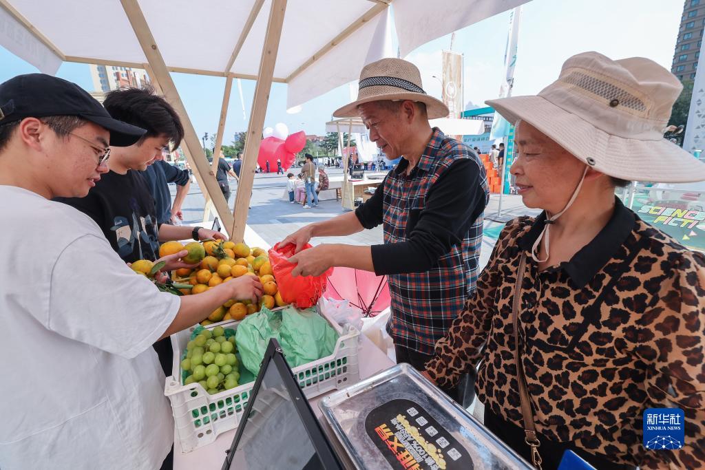 10月24日,游客在湖州市織里鎮(zhèn)豐收節(jié)現(xiàn)場(chǎng)的農(nóng)特產(chǎn)品嘉年華集市上選購(gòu)特色農(nóng)產(chǎn)品。