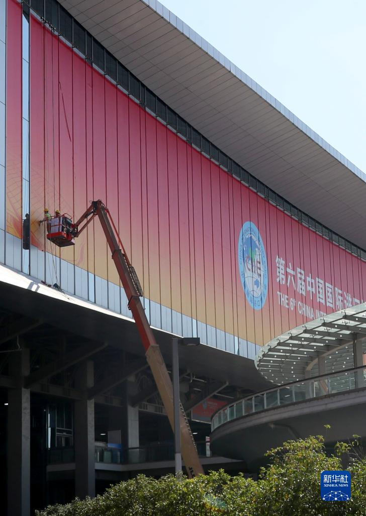 位于上海青浦的國家會(huì)展中心(上海)場(chǎng)館外部進(jìn)博會(huì)主題裝飾工程目前已進(jìn)入收尾階段,包括南廣場(chǎng)在內(nèi)的四個(gè)出入口都已裝飾一新,迎接即將開幕的第六屆中國國際進(jìn)口博覽會(huì)。