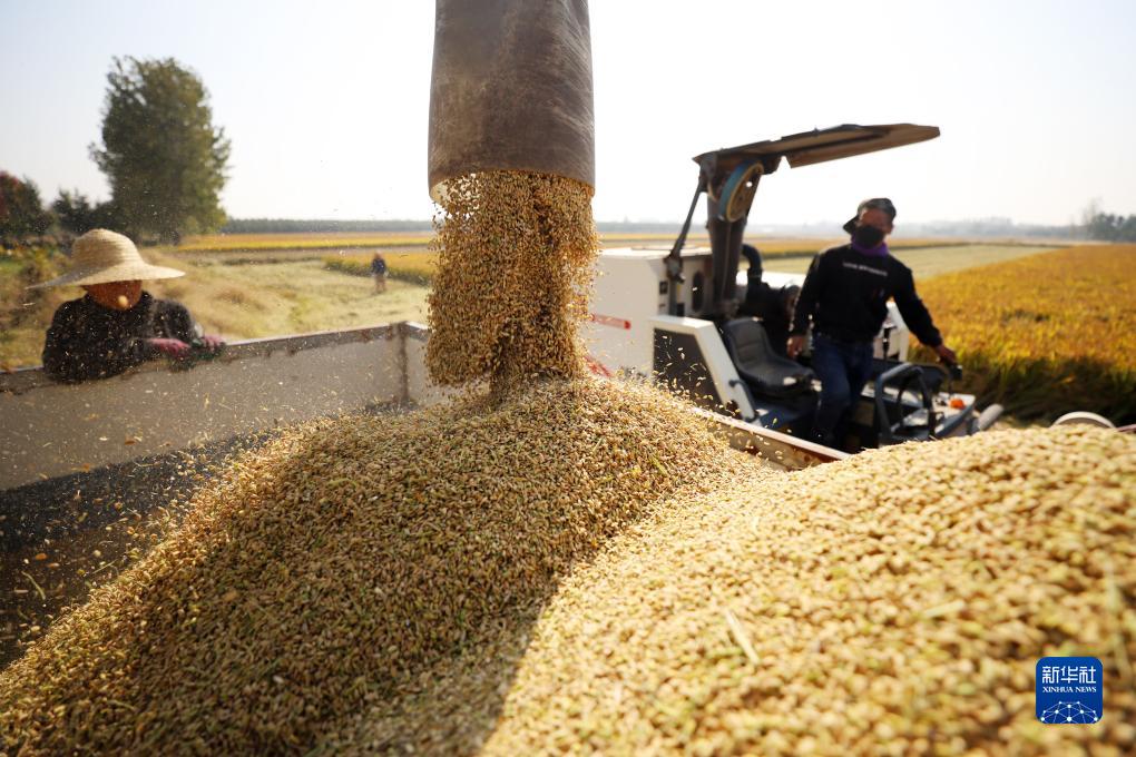 秋收時(shí)節(jié),農(nóng)民在田間忙著收獲各種作物,各地一派農(nóng)忙景象。