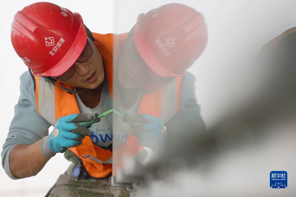 工人在雄安體育中心體育場施工(10月24日攝)。