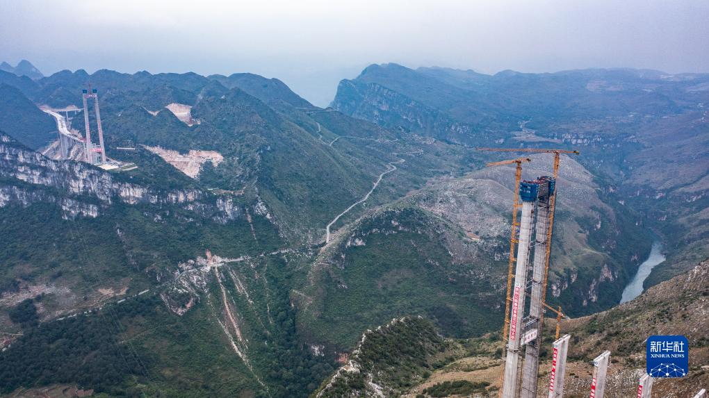 花江峽谷大橋是六安高速公路的控制性工程之一,建成后主橋橋面與谷底的北盤江距離達625米,將成為世界第一高橋。