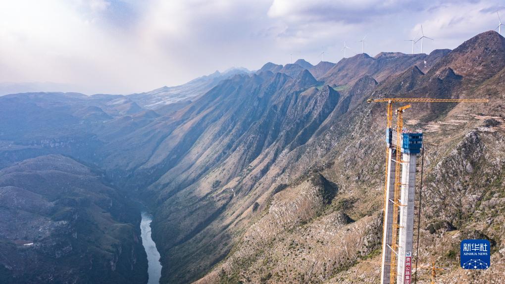 花江峽谷大橋是六安高速公路的控制性工程之一,建成后主橋橋面與谷底的北盤江距離達625米,將成為世界第一高橋。