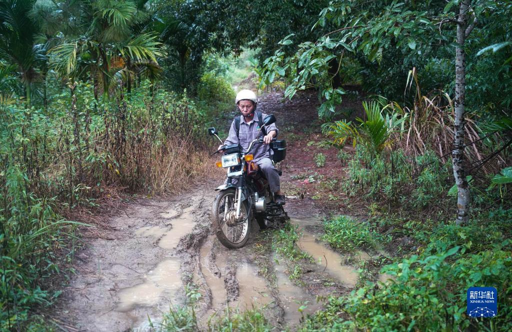 10月18日,海南長臂猿監測隊隊員李文永在海南熱帶雨林國家公園霸王嶺片區工作。