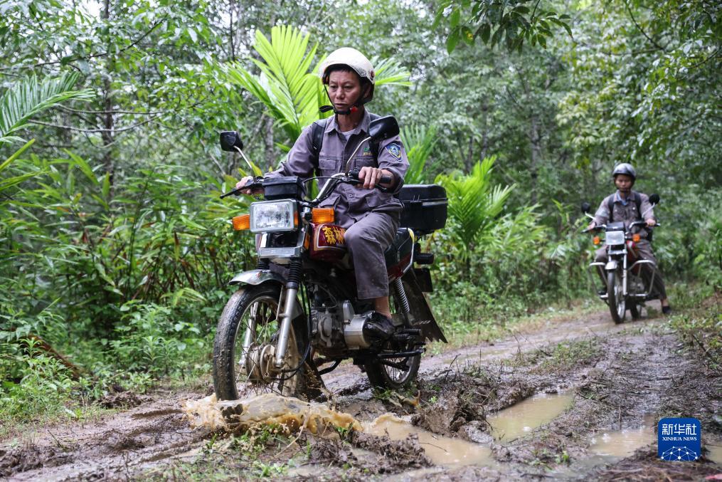 10月18日,海南長臂猿監測隊隊員李文永(左)和同事在海南熱帶雨林國家公園霸王嶺片區工作。