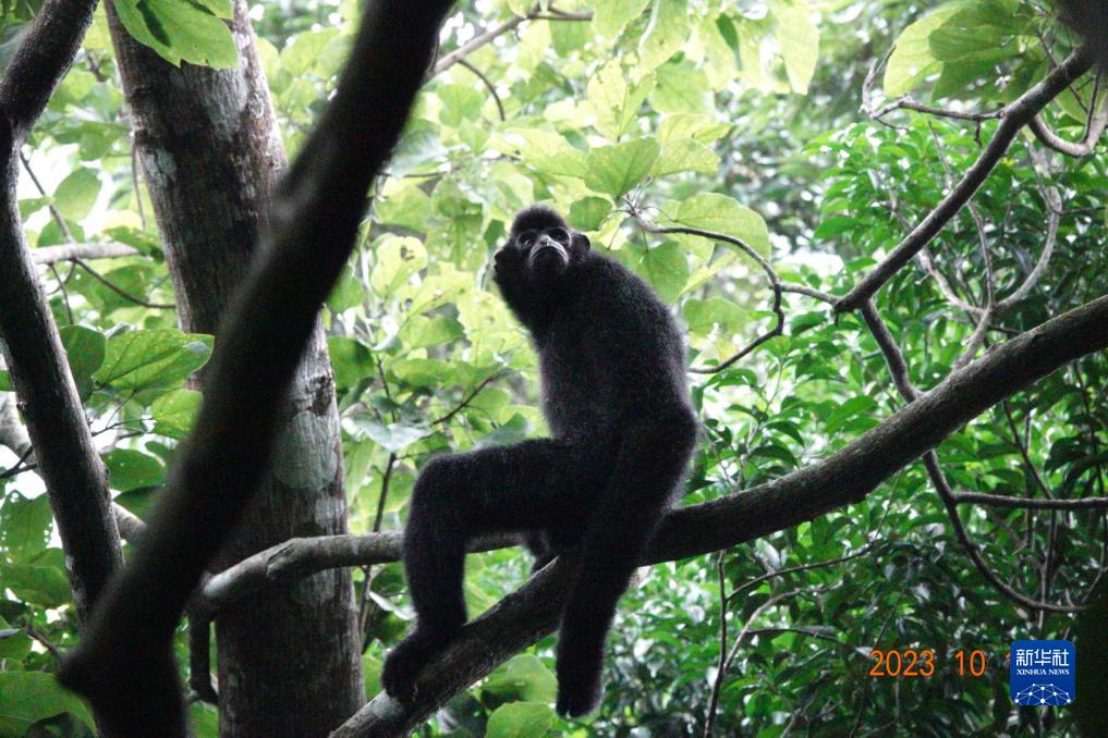 這是2023年10月15日在海南熱帶雨林國家公園霸王嶺片區拍攝的海南長臂猿。