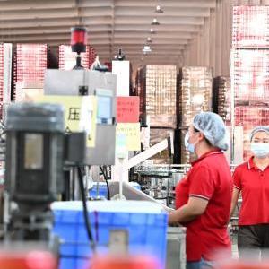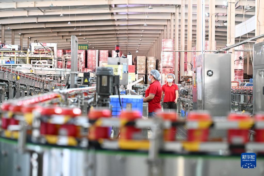 10月24日,工人在貴州王老吉刺檸吉惠水基地飲料灌裝車間內工作。