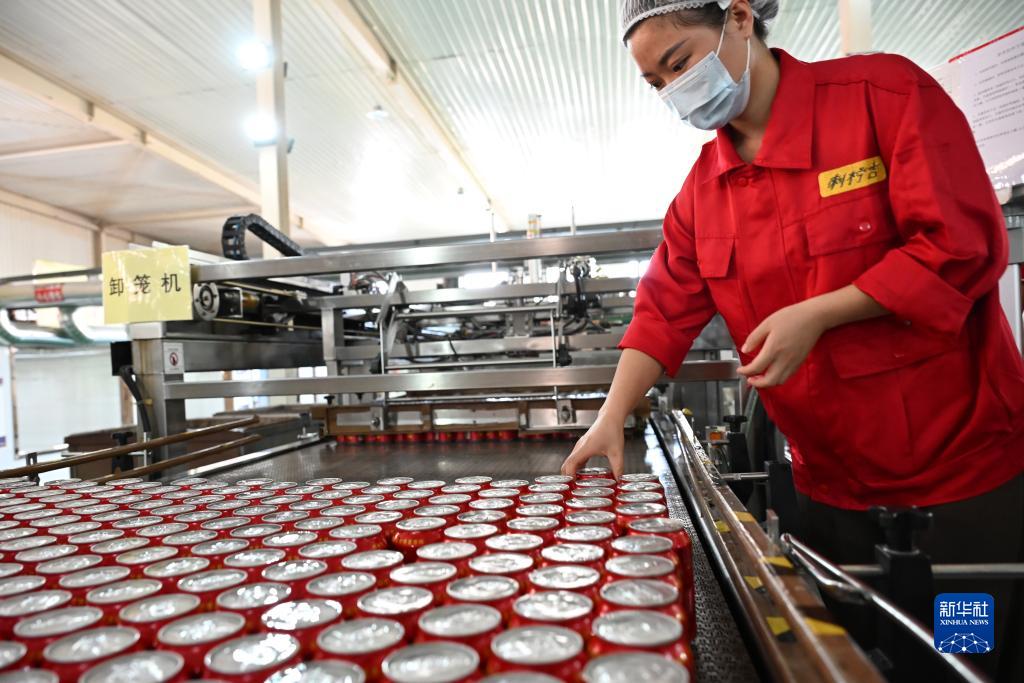 10月24日,工人在貴州王老吉刺檸吉惠水基地飲料灌裝車間內工作。