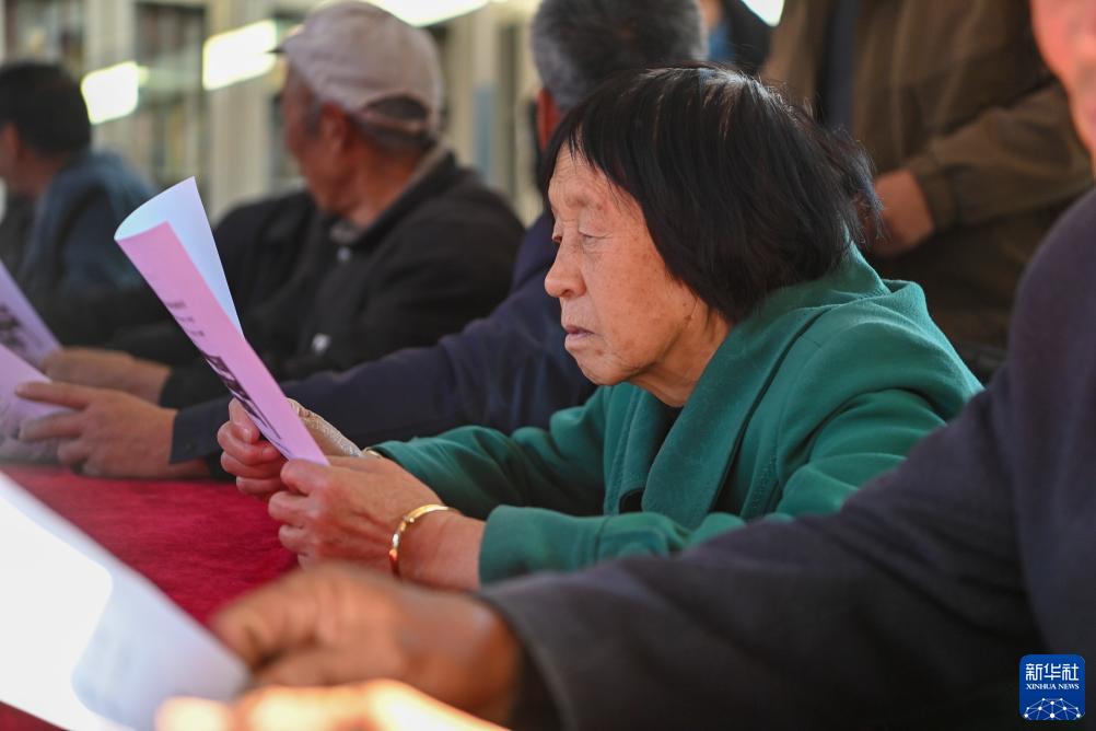 10月24日,村民在山西省左權縣寒王村農家書屋查看宣傳單。